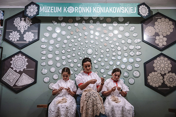 Mit Recht assoziiert man das Dreidorf auch mit lebendiger Volkskultur. Weit über die Grenzen der Region bekannt sind die Koniakauer Spitzen (poln. koronki koniakowskie). Selbst heute wird noch in vielen Häusern der Gegend gehäkelt. An diese alte Tradition erinnert das Zentrum für Koniakauer Spitzen (Centrum Koronki Koniakowskiej) – ein kleines privates Museum. Und es ist nicht das einzige Museum. In den drei Orten des Dreidorfes gibt es insgesamt sieben Museumseinrichtungen – ein weiterer Beweis für die hohe Attraktivität der Gegend.