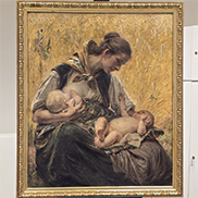 Bertha Wegmann wurde 1847 in der Schweiz geboren. Als Kind zog sie mit ihren Eltern nach Kopenhagen zurück. Bertha zeigte von früh an ein Interesse fürs Malen. Ein Familienmäzen – Moses Melchior – finanzierte ihr das Studium in München und Paris. Ab 1881 kamen die ersten Preise und Auszeichnungen u.a. goldene Medaille in Salon de Paris („Das Porträt der Malerin Jeanny Bauck“). Sie malte überwiegend Frauen – eine große Inspiration gaben ihr ihre Partnerinnen und Freundinnen. Faszinierend für sie war alles, was mit der Sensibilität der Frauen und ihrer Weiblichkeit zu tu hatte. Obwohl sie selber nie Mutter wurde, konnte sie auf eine wundersame Art und Weise die Muttergefühle und Liebe zeigen.