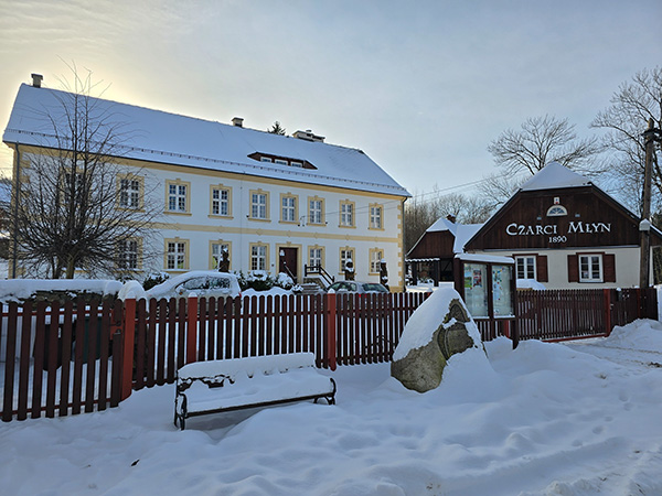 Nach der Wanderung ist der Besuch in einer alten Mühle – der sog. Teufelsmühle (Czarci Młyn) – sehr empfehlenswert. Die Führungen (jede Stunde) sind dort zur Zeit leider nur auf Polnisch, aber im Mühlen-Café kann man ein gutes Brot kaufen, einen Kaffee trinken und sich kurz aufwärmen. Die Besonderheit der Mühle bildet die originale Ausstattung aus dem Jahre 1890 und die Replik von dem großen Mühlenrad – Durchmesser 6,5 Meter.
