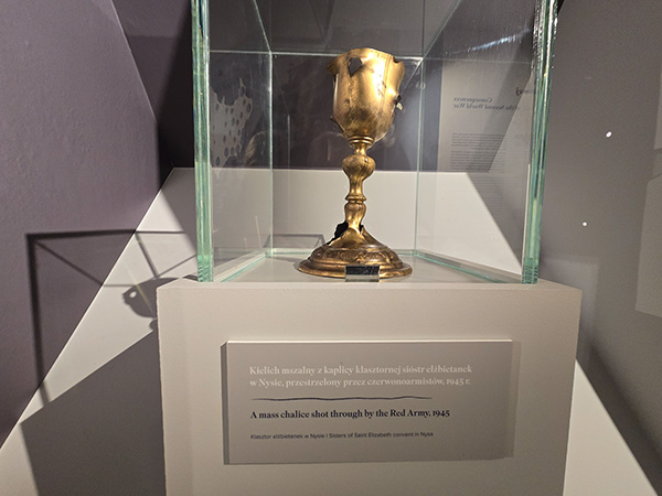 Die sowjetische Besatzung wird durch einen von den Schießkugeln beschädigten Messekelch gezeigt, der den Elisabethschwestern aus Neisse gehörte. Die Schwestern haben wie die anderen deutschen Frauen das tragische Schicksal miterlebt – sie wurden am Ende des Zweiten Weltkriegs von den russischen Soldaten vergewaltigt oder ermordet.